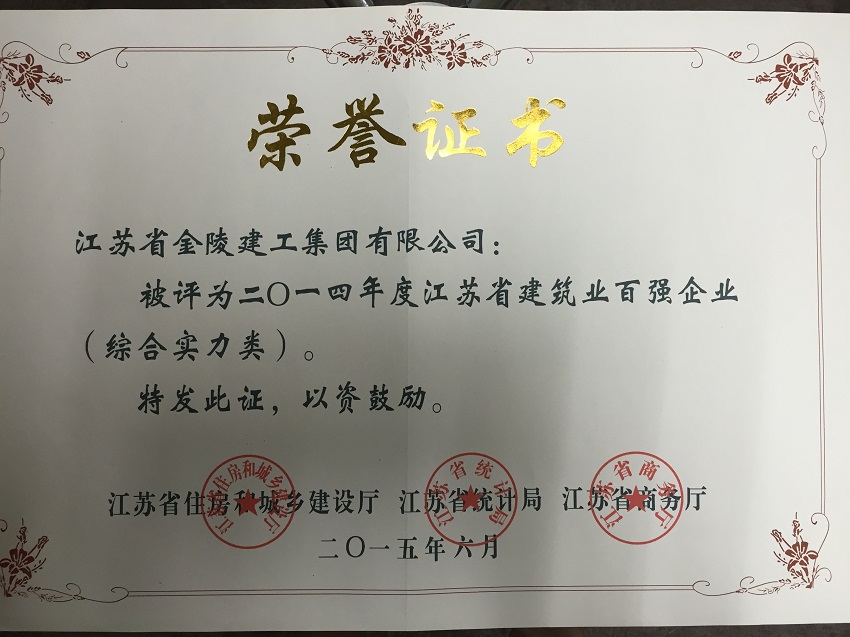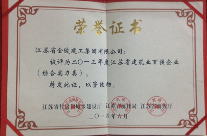 2014年江蘇省建筑業(yè)百強(qiáng)企業(yè)(綜合實(shí)力類)獎狀