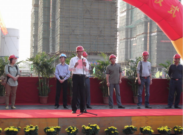 十月金秋,秋高氣爽,工地鮮花錦簇,鼓樂齊鳴,10月10日下午4時(shí)18分,我公司濱江和園保障房項(xiàng)目部舉行了隆重?zé)崃业?8層住宅樓封頂儀式。 該工程由6棟18層、5棟28層住宅樓及地庫組成,共17.5萬平方米,分三批次開工,是浦口區(qū)最大的保障房工程。6棟18層住宅樓作為首批開工項(xiàng)目,自今年3月份開工以來,項(xiàng)目部全體管理人員,克服困難,比總進(jìn)度計(jì)劃提前11天完成封頂。 浦口區(qū)房產(chǎn)局副局長劉飛,浦口區(qū)保障房建設(shè)發(fā)展有限公司總經(jīng)理薛松,南京堃正工程項(xiàng)目管理有限公司總經(jīng)理左文清及我公司副書記張正山等同志出席了典禮儀式。儀式由代建方江蘇亞東建設(shè)發(fā)展集團(tuán)有限公司浦口分公司總經(jīng)理胡洪軍主持。 在致辭中,胡洪軍對我項(xiàng)目部前期的工作給予充分的肯定,對提前封頂取得階段性成果表示祝賀,并希望我項(xiàng)目部在下階段工程中,發(fā)揚(yáng)成績,取得巨大勝利。 左文清同志代表監(jiān)理公司發(fā)言,他對項(xiàng)目部的前期工作表示滿意,并表示在今后工作中,繼續(xù)為實(shí)現(xiàn)保障房工程達(dá)到優(yōu)質(zhì)高速的目標(biāo)提供服務(wù)。 張正山同志代表我公司,向浦口區(qū)有關(guān)主管部門、代建方及監(jiān)理單位對工程給予的關(guān)心和支持表示感謝,并表示在今后將繼續(xù)努力,兢兢業(yè)業(yè),建造讓人民放心滿意的保障房工程,為浦口區(qū)民生工程做出更大貢獻(xiàn)。 在喜慶的樂曲聲中,封頂儀式圓滿結(jié)束!