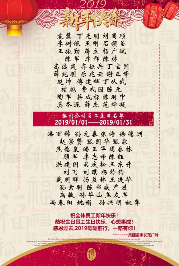【生日祝福】恭祝1月生日的員工生日快樂!