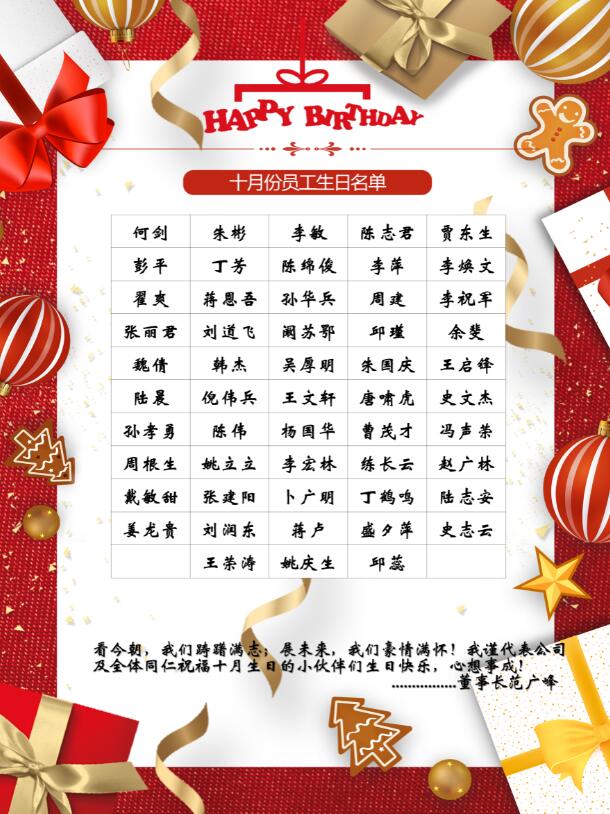 【生日祝福】恭祝10月生日的員工生日快樂!