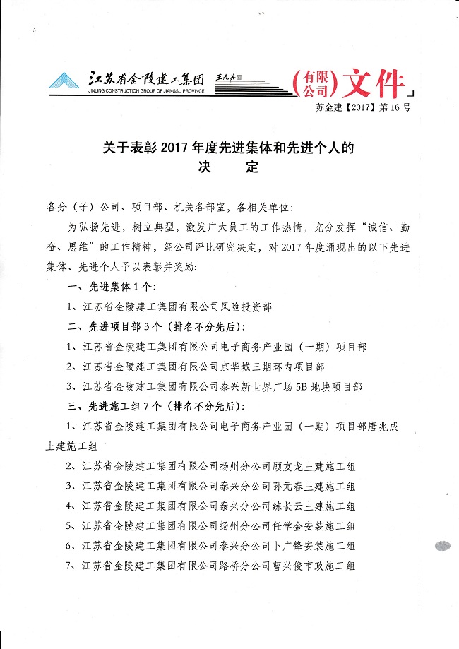 關(guān)于表彰2017年度先進(jìn)集體和先進(jìn)個(gè)人的決定