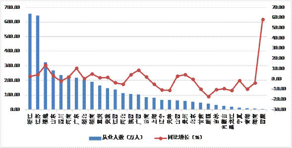 圖5  2018年上半年各地區(qū)建筑業(yè)從業(yè)人數(shù)及增速