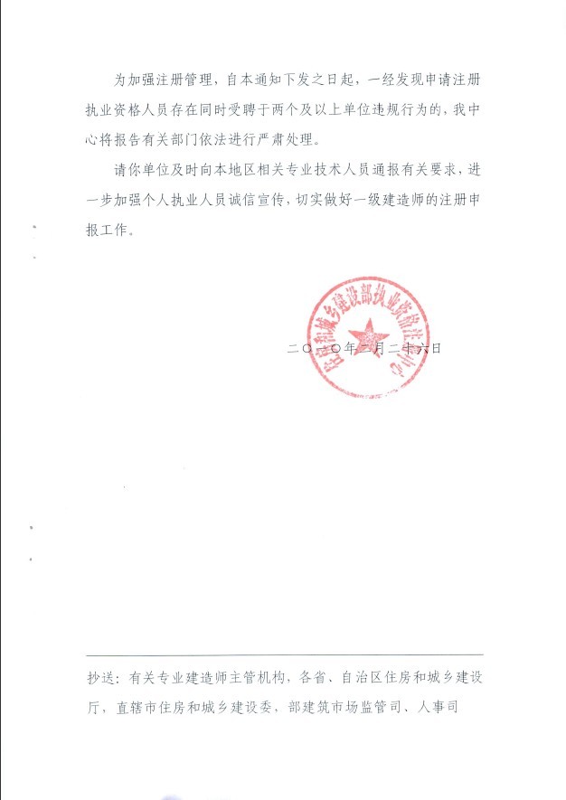 關于規(guī)范一級建造師注冊申報工作有關問題的函