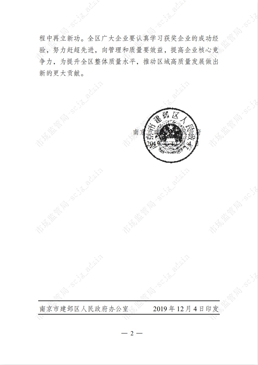 集團(tuán)公司榮獲第十屆建鄴區(qū)政府質(zhì)量獎(jiǎng)提名獎(jiǎng)