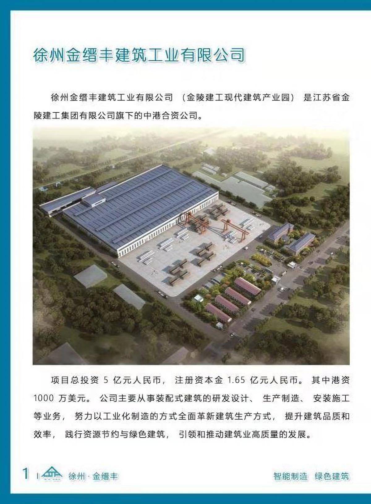 徐州金縉豐建筑工業(yè)有限公司(金陵建工現(xiàn)代建筑產(chǎn)業(yè)園)是江蘇省金陵建工集團(tuán)有限公司旗下的中港合資公司。公司注冊(cè)資金1.65億元人民幣。其中外資1000萬(wàn)美元。公司將充分發(fā)揮金陵建工集團(tuán)研發(fā)、設(shè)計(jì)、生產(chǎn)、施工、投資一體化的優(yōu)勢(shì),努力以工業(yè)化制造的方式全面革新建筑生產(chǎn)方式,提升建筑品質(zhì)和效率,踐行資源節(jié)約與綠色建筑,引領(lǐng)和推動(dòng)建筑業(yè)高質(zhì)量的發(fā)展。